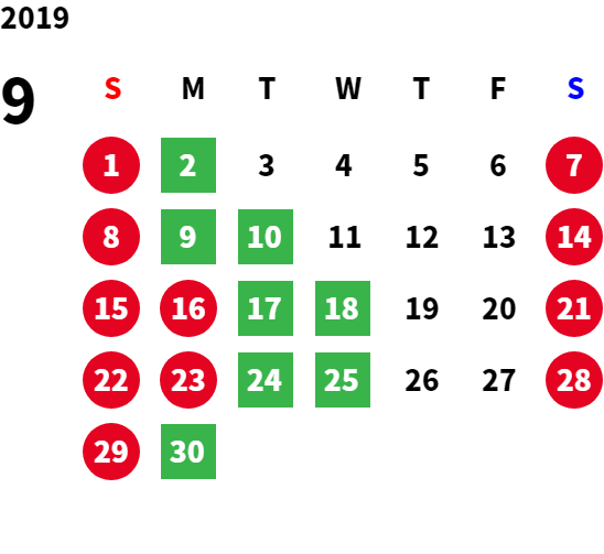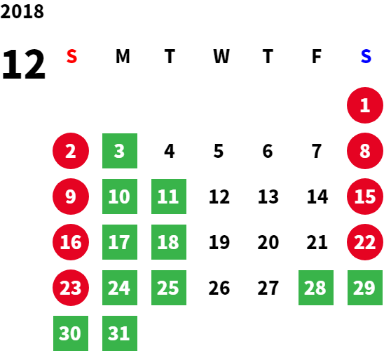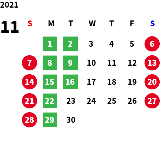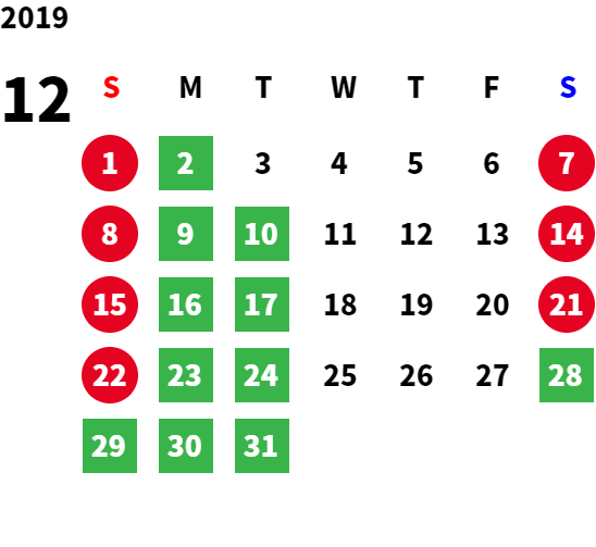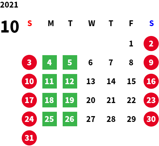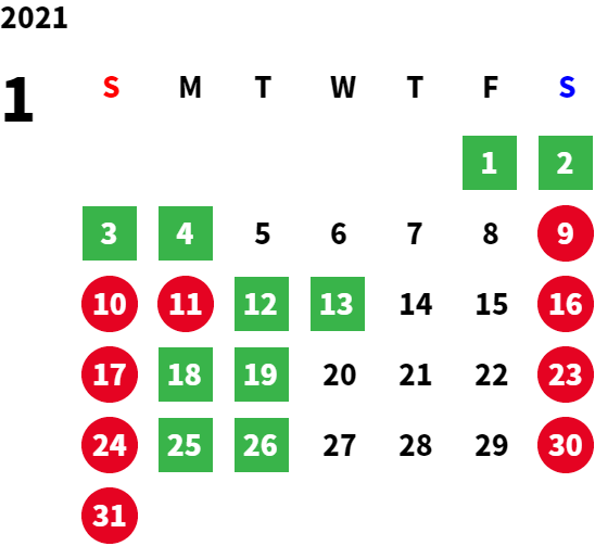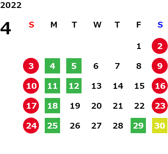 営業日カレンダー