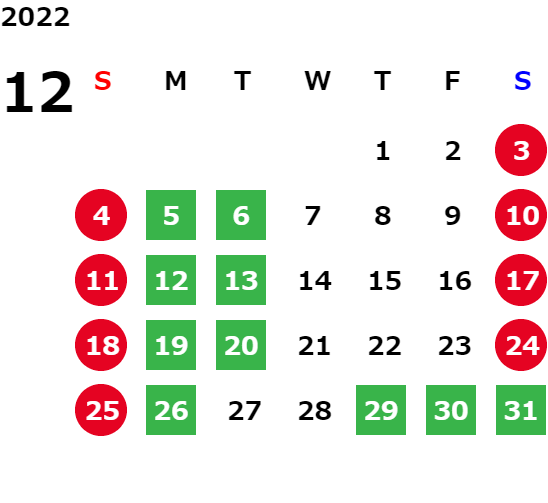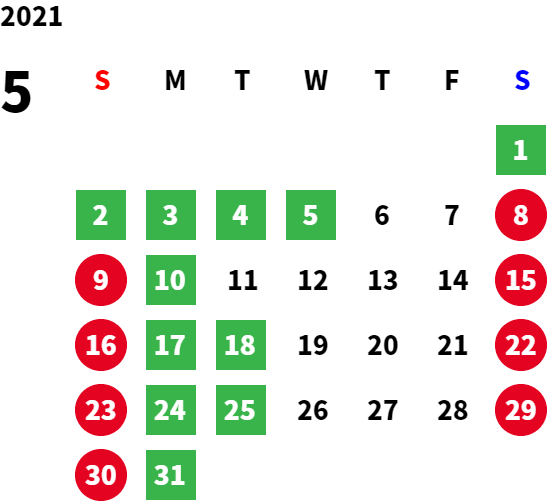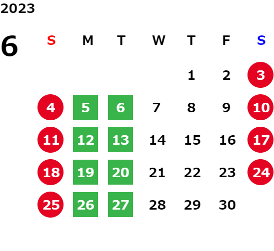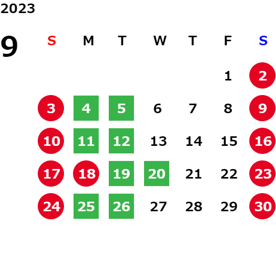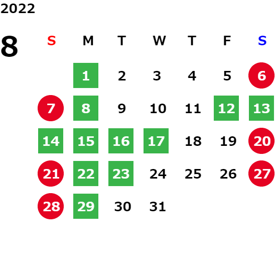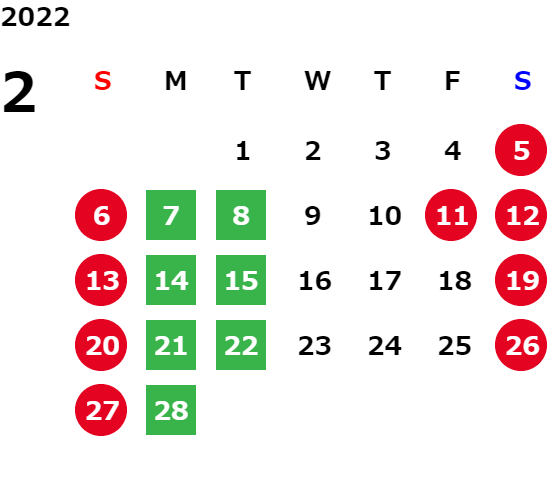 下記の営業日カレンダーをご覧ください。